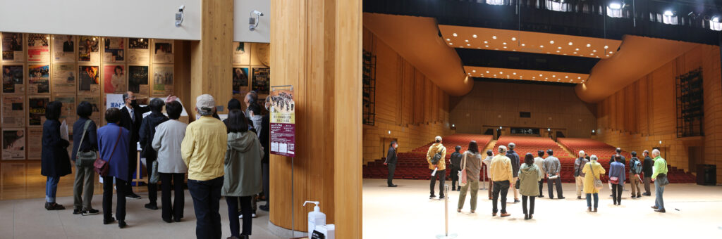 開館当初からいらっしゃる施設担当者の方にお話しを伺いながら、演者の方しか入ることのできない楽屋や、ステージから見た景色をご見学いただきました。